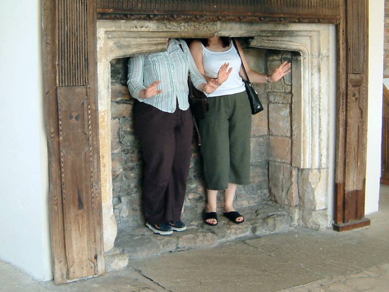Jo and Sue losing their heads in the Tudor accommodation within Helmsley Castle.