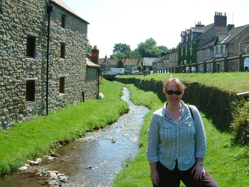 Jo by the stream in Helmsley, a charming Yorkshire village.